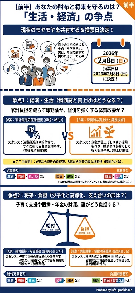 「政治は難しい」「誰に入れても同じでしょ?」と思っているあなたへ。今回の選挙は、私たちの生活に直結する重要な分岐点です。主要な争点を「生活者目線」で分かりやすく図解にまとめました。